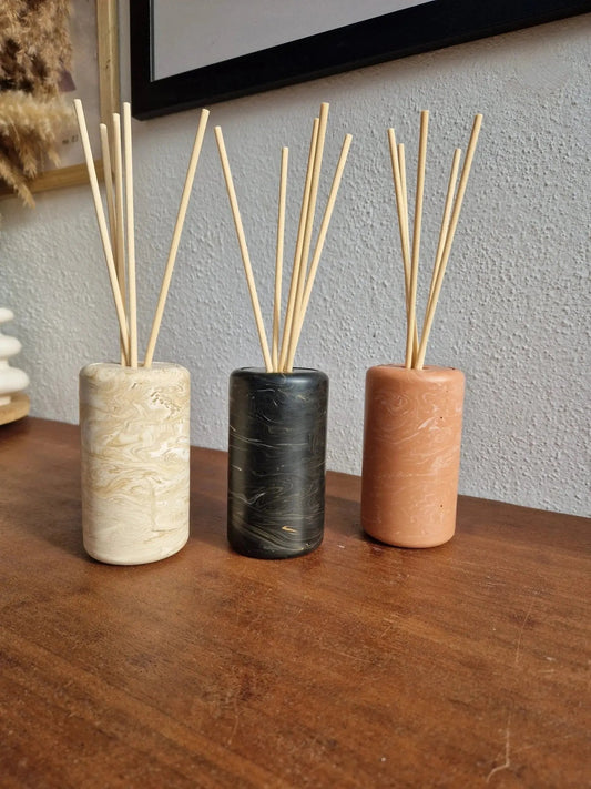 Découvrez l'élégance aromatique de nos diffuseurs à bâtonnets dans des pots uniques en Jesmonite.